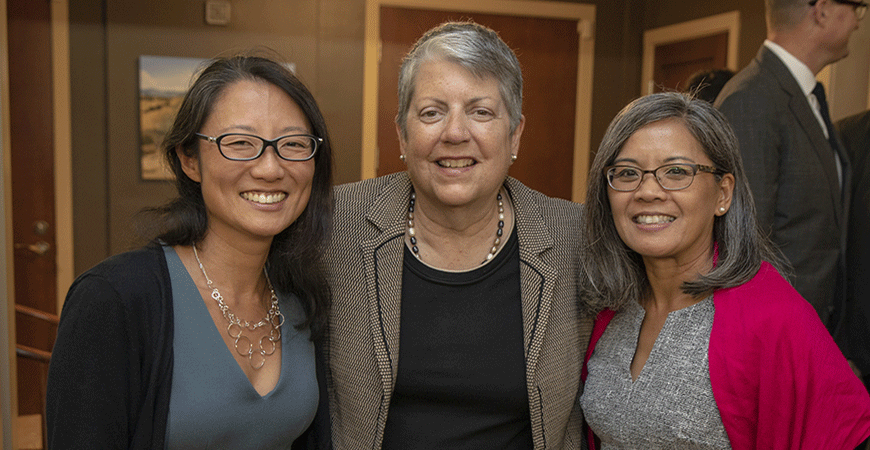 From left: Anna Song, UC President Janet Napolitano, Jennifer Manilay